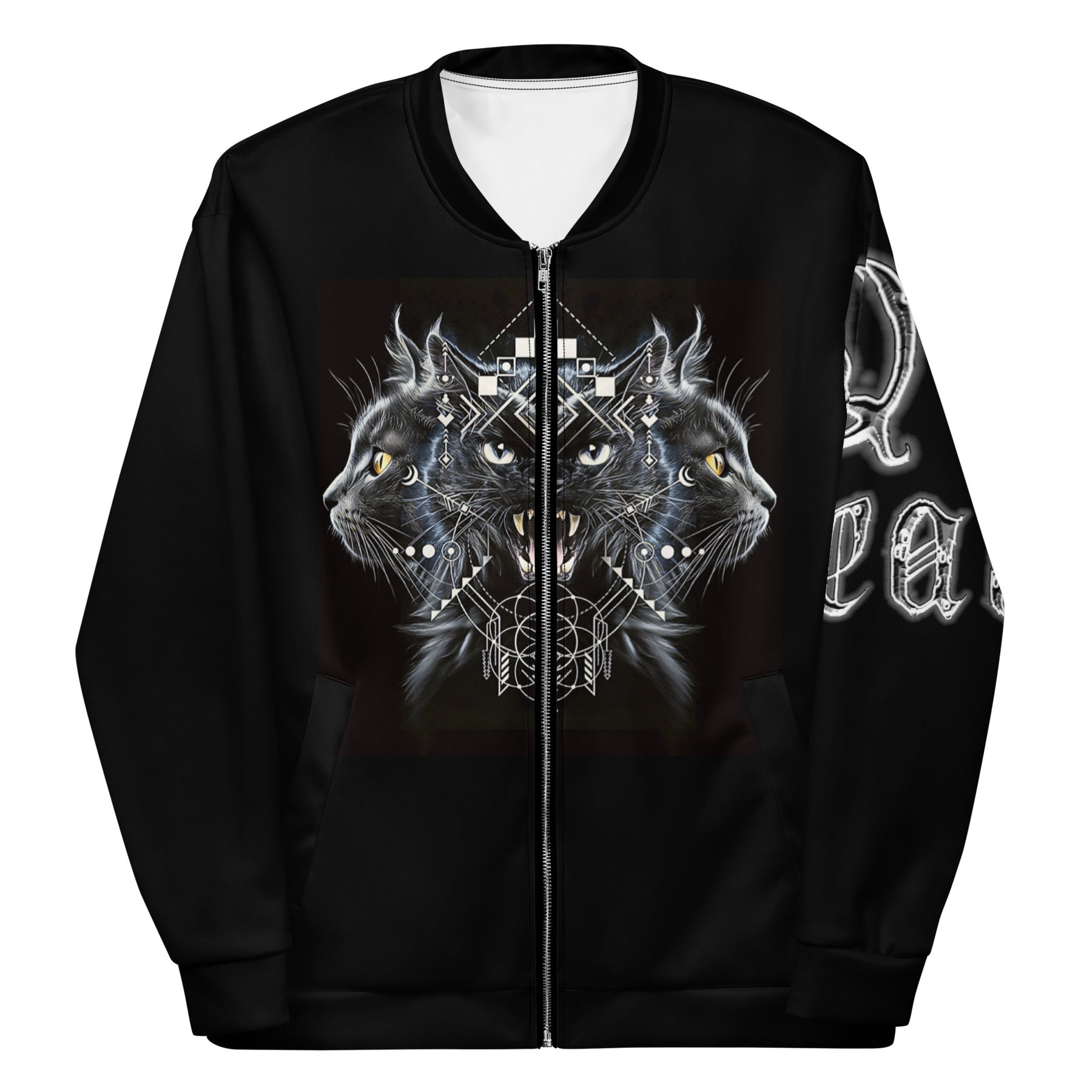 Unleash your inner mystic with the Triple Cat Bomber Jacket—an exclusive, limited-edition release from Zack Prestige for the Q Threads Halloween Collection. This design features three celestial feline guardians intertwined with the Flower of Life, representing protection, mystery, and transformation. Each cat symbolizes a different realm of consciousness—past, present, and future—woven together through sacred geometry and visionary design. The result is a jacket that’s both mystical and modern, perfect for those who walk the fine line between style and spirit.
