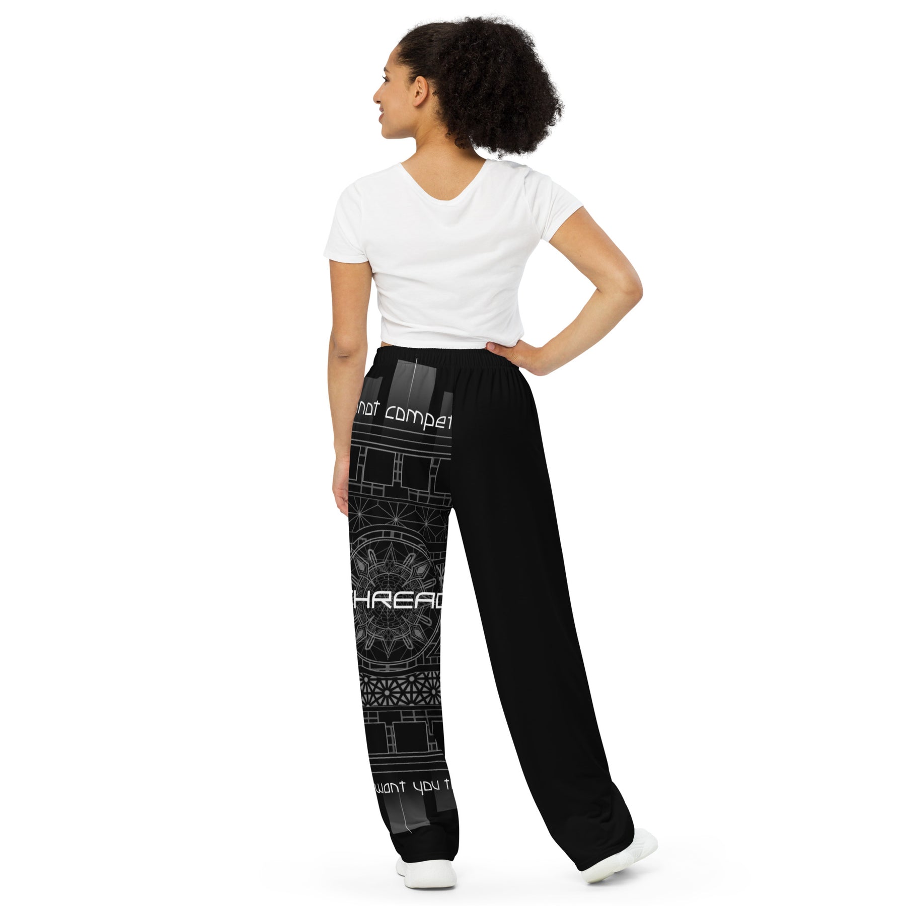 Step into alignment with the Meta Wide-Leg Pants, a unisex essential that blends everyday comfort with intentional design. Featuring the sacred geometry of the Sri Yantra, a timeless symbol of balance and unity, and the Q Threads motto, *“You can’t compete with us because we want you to win too,”* these pants embody collaboration, empowerment, and conscious living. More than just clothing, they’re a wearable reminder of community and connection.